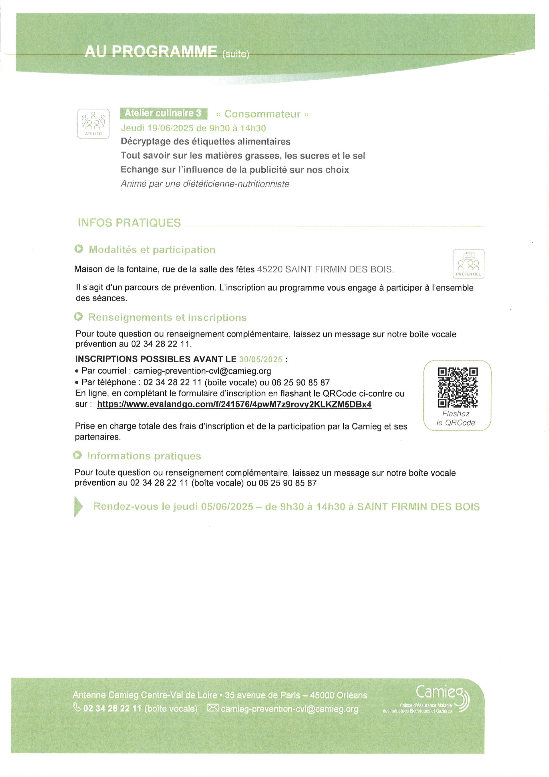 Antenne Camieg Centre-Val de Loire - 35 Avenue de Paris - 45000 ORLEANS - Tel. 02.34.28.22.11 (boîte vocale) - email : camieg-prevention-cvl@camieg.org